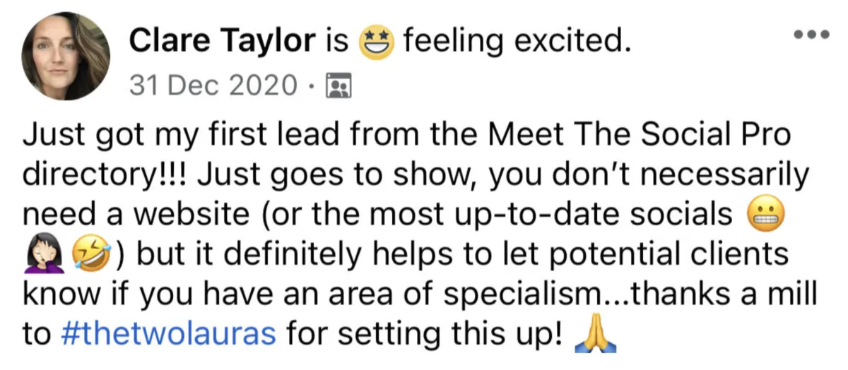 Set up in 2020, the Meet The Social Pro® directory sees thousands of businesses visiting every year, looking for freelancers.