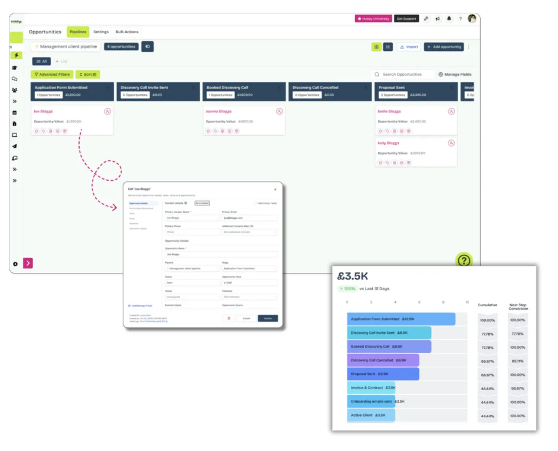 Hubsy Pipelines make it easy to see exactly where every lead or client is in your process — from first enquiry to paid invoice. Drag and drop cards between stages, add notes or tasks, and let automations handle follow-ups.