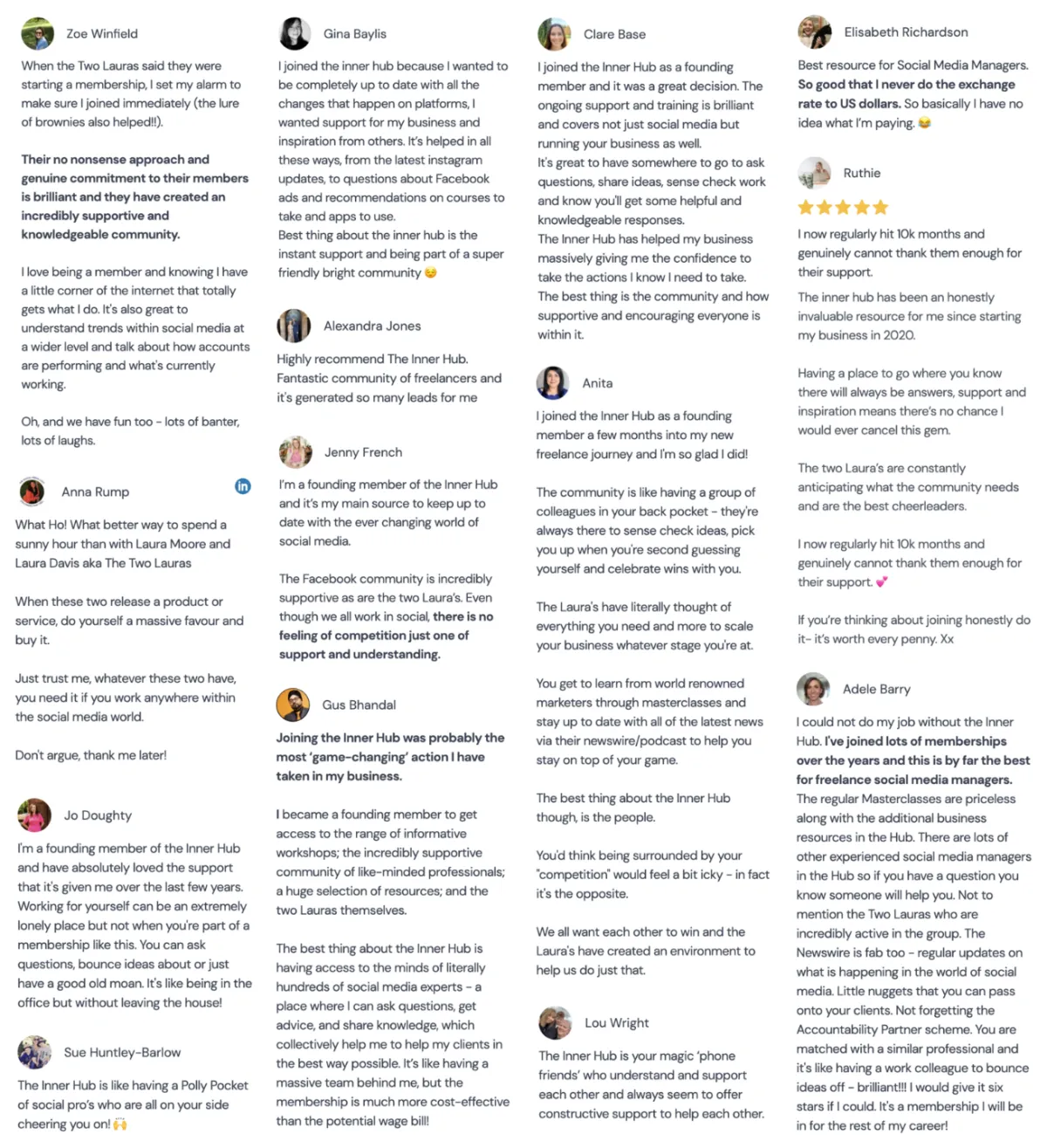 “The Inner Hub has given me a huge amount of confidence in my skills and the value of my services. I don't undercharge anymore, and I have become much better at pre-qualifying clients and spotting red flags. I don't say yes to things I don't want to do. I have backup from The Two Lauras now.”